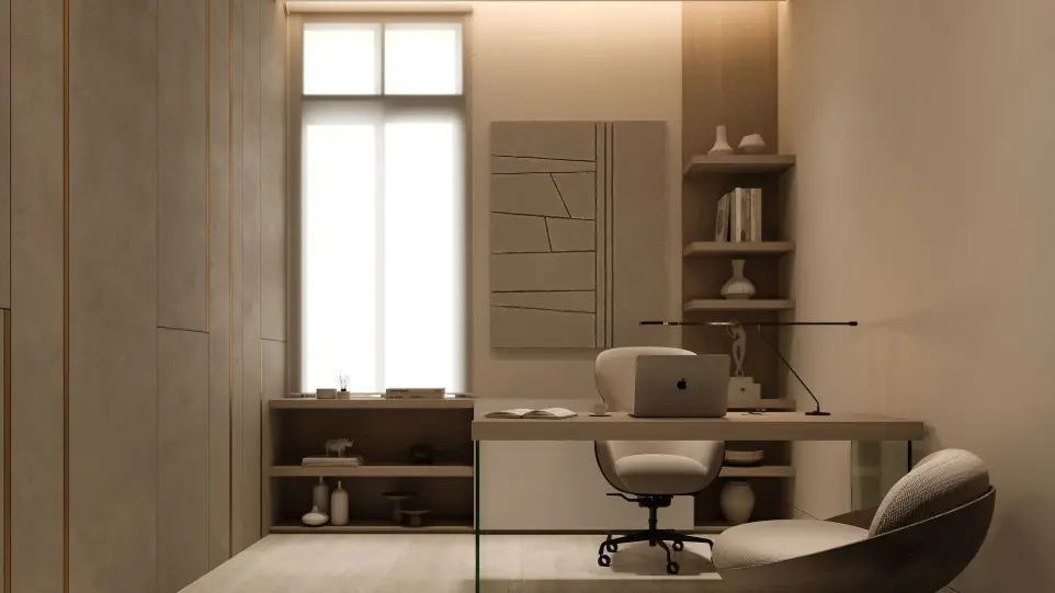 صميم عصري بخطوط أنيقة ونوافذ بانورامية تعكس جمال الإضاءة الطبيعية